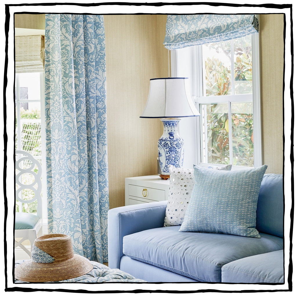 I was drawn to Casa Branca’s fabric collection because of its timelessness and quality. With a young family (and the addition of a very active puppy!), I chose the Giardino Sky performance fabric for our sectional, and it’s been a lifesaver. The room had previously been bright and playful, but for its next chapter, I wanted a more sophisticated palette to mature with my family. The Damasco, Lino Zig Zag and Vimini were all a match made in heaven and each played an important role.