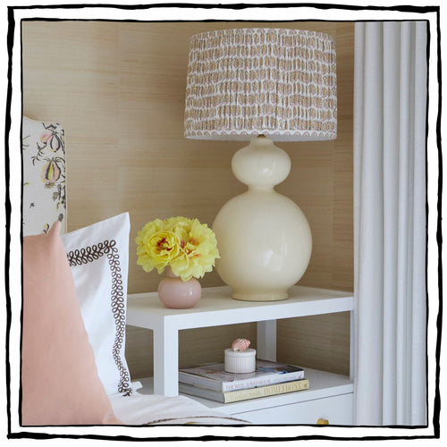 For the bedroom, we started with Nantes as the beautiful headboard fabric. Our client walked into Casa Branca and immediately fell in love with it. We were thrilled when she brought it to our meeting, and built from there – the small scale print on the lampshades was a perfect balance to the more dramatic headboard. Later, we added the upholstered stools in Rosa Rigata; we felt they were such a fun unexpected pop of hot pink!
