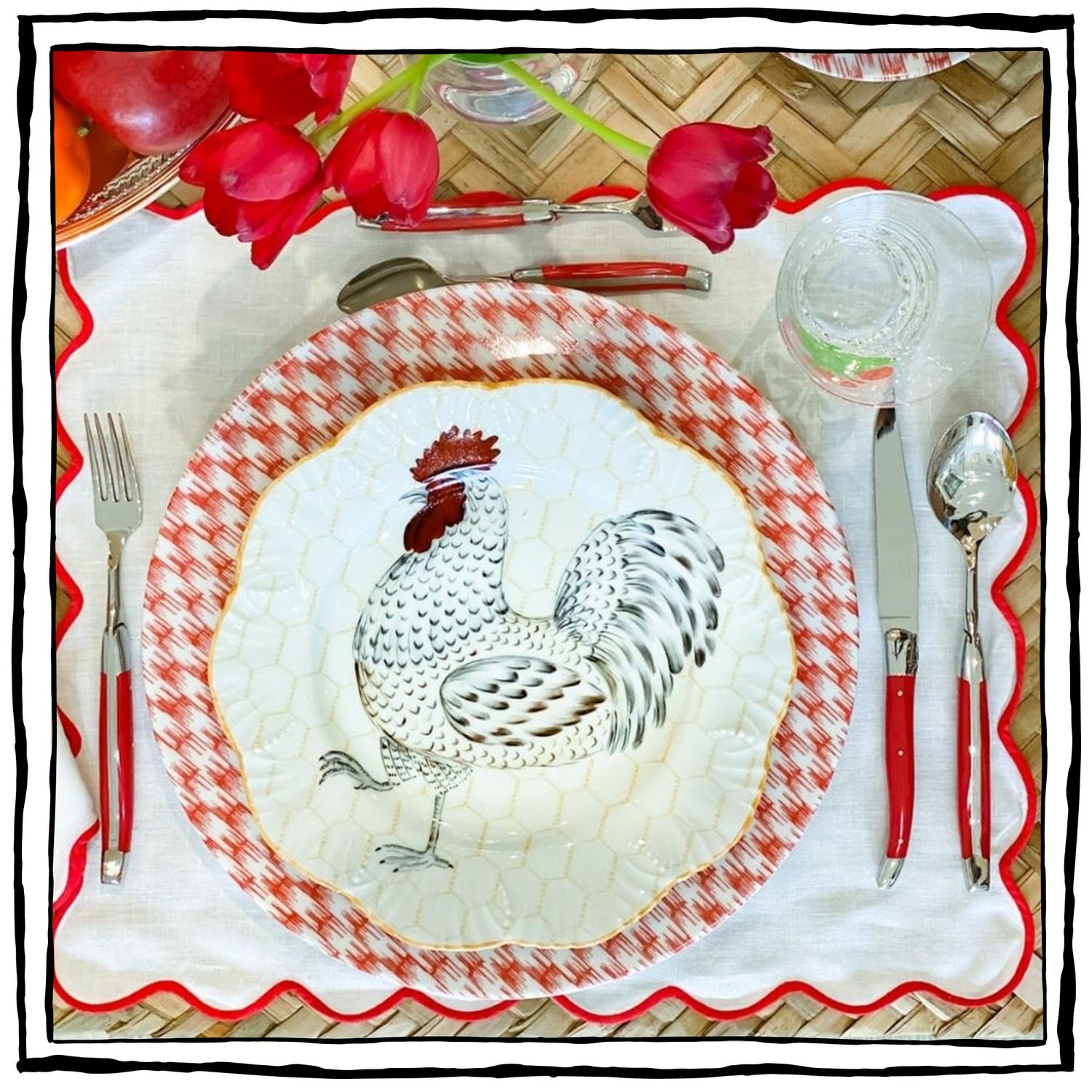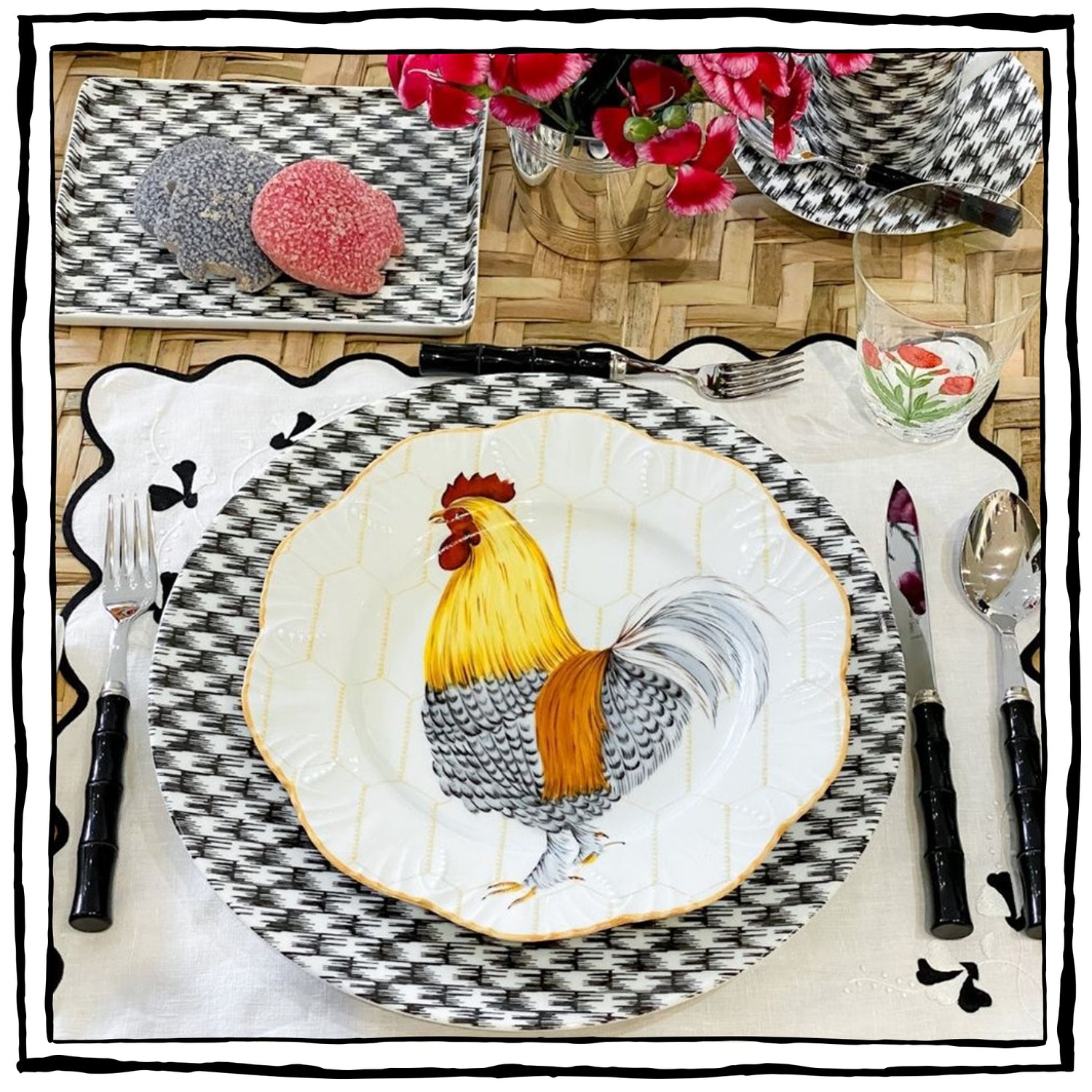 All of the Casa Branca dish designs are set upon porcelain of the highest quality made in Limoges, France. Cestino is our graphic interpretation of a basket weave, using a motif carried over from our textile collection. Designed to playfully mix with other designs in our collection or to spruce-up more traditional settings.