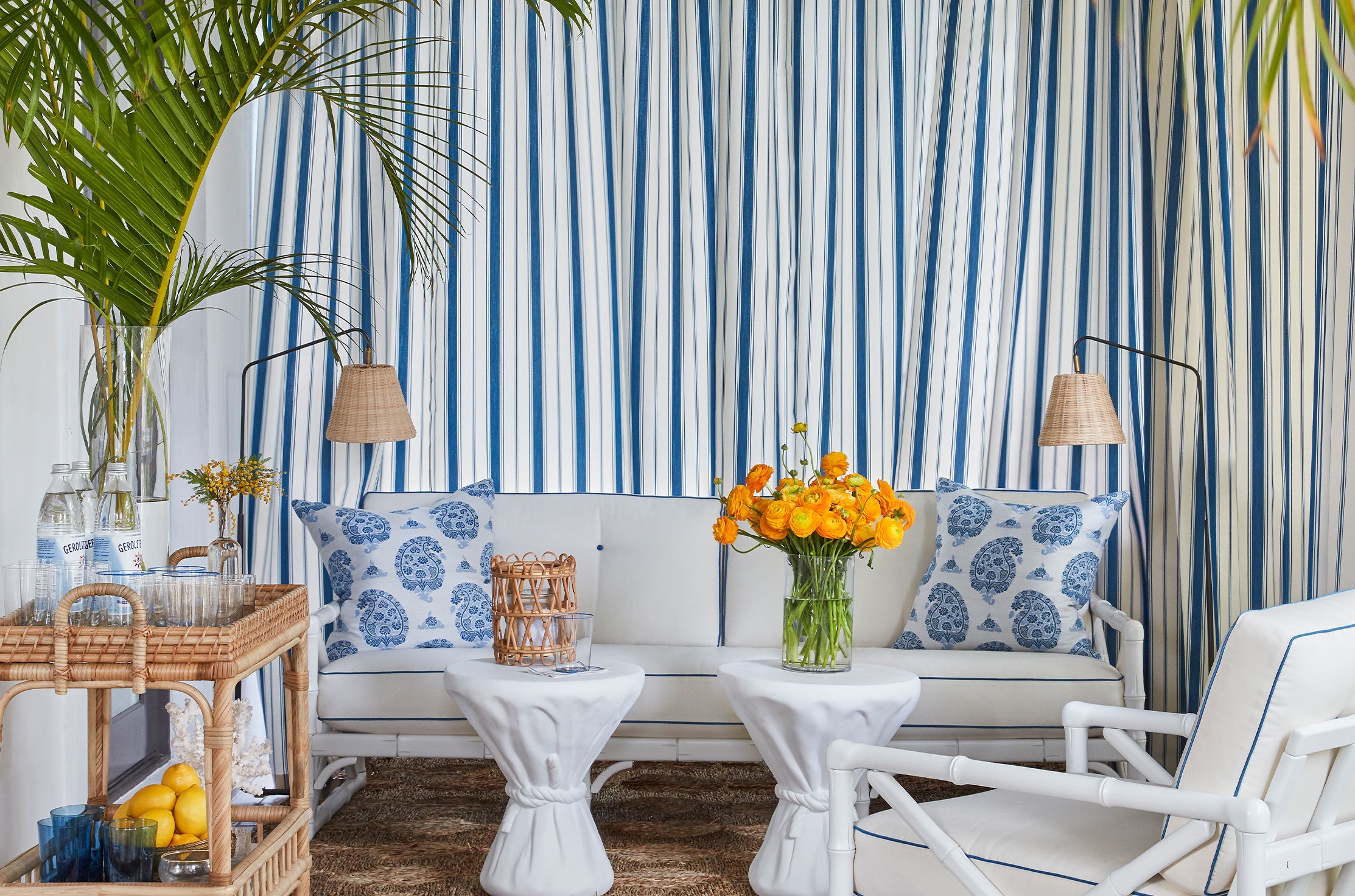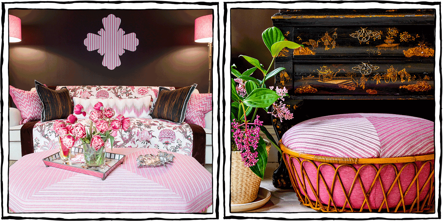 Stripes are a great way to play with scale and texture in an interior. Inspired by a room at Potsdam, the Branca Stripe has been a staple of Alessandra's for over 25 years. Try it as accent banding on drapery, or create coordinating, but distinctive, pillows with zigzags or concentric squares.