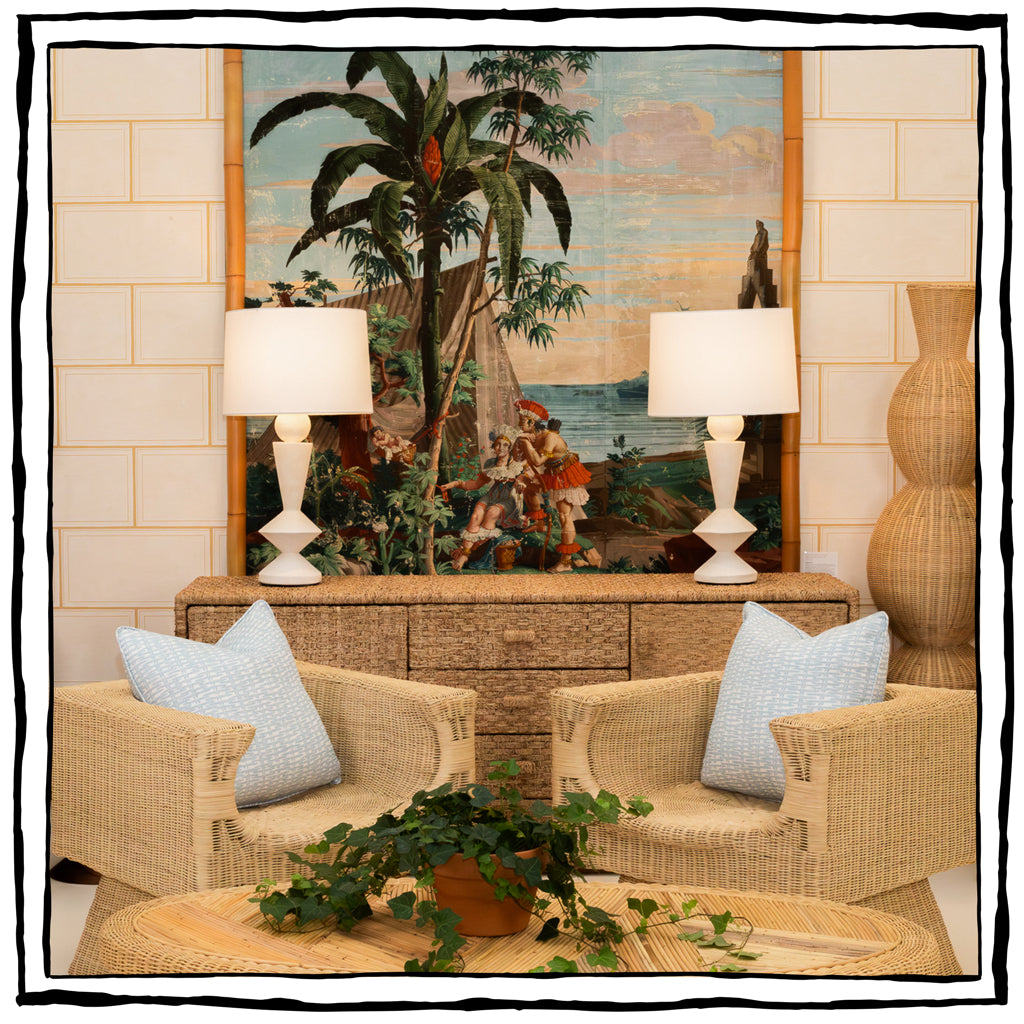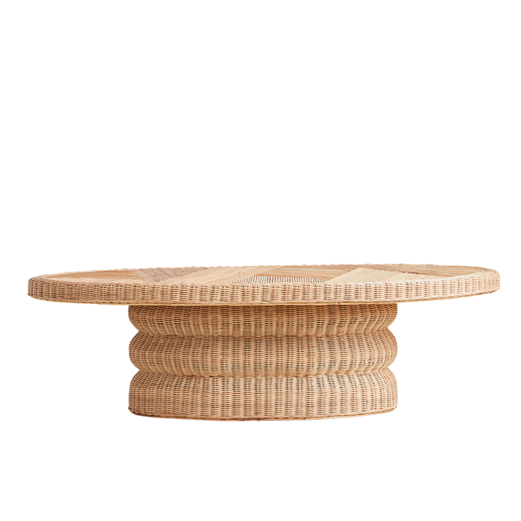 The Billy Coffee Table is formed from whole pieces of natural rattan, gathered and aligned into organic curves and uniform geometric lines. A checkerboard tabletop brings character to this design and honors the natural grain and texture of the rattan.