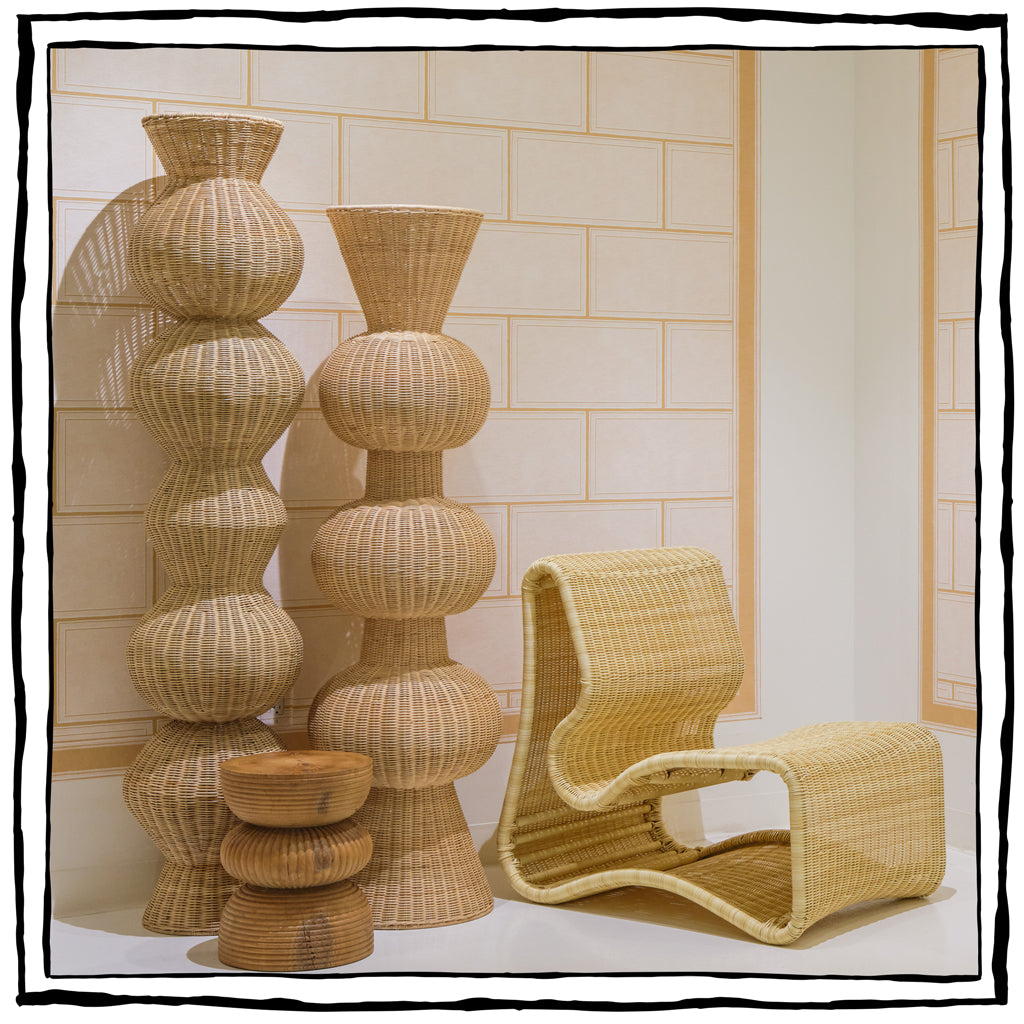 Handwoven with natural rattan, the Cronos Column lamp's sculptural proportions make a statement as a decorative element, bringing both light and height to a space. Combine with other members of our sculptural rattan columns family for a dynamic, layered look.