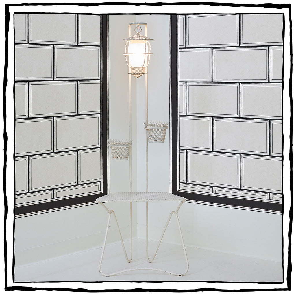 Done in the style of Mathieu Matégot. His distinctive furniture and lighting designs, characterized by their sinuous metal forms reminiscent of folded paper, are widely admired and eagerly collected by enthusiasts. Employing techniques such as perforated sheet metal and metal tubing, this Hungarian-born French architect, artist, and designer, renowned for his innovative "rigitulle" method, crafted tables, chairs, and decorative pieces that stand as iconic examples of French modernism, leaving a lasting impression in any space.