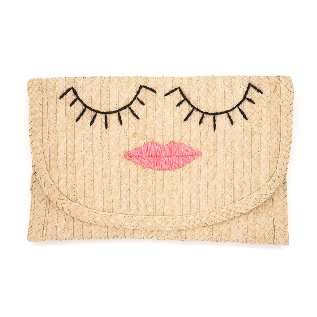 Handwoven with love, these straw clutch's keep a smile by your side! Lined with Casa Branca linen fabric and fastened with a magnetic closure. Features an inside pocket with zipper.