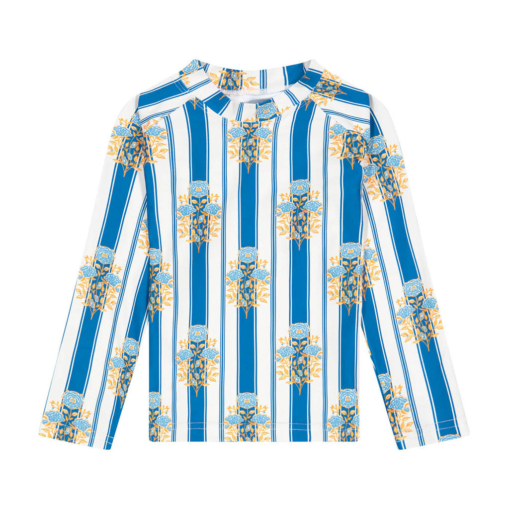 Inspired by Portugal's blue hues with hints of citrus our coordinating Orange Floral and Blue Stripe prints are the perfect compliment to one another for sibling coordinated summer days or mix-and-match options, alike.