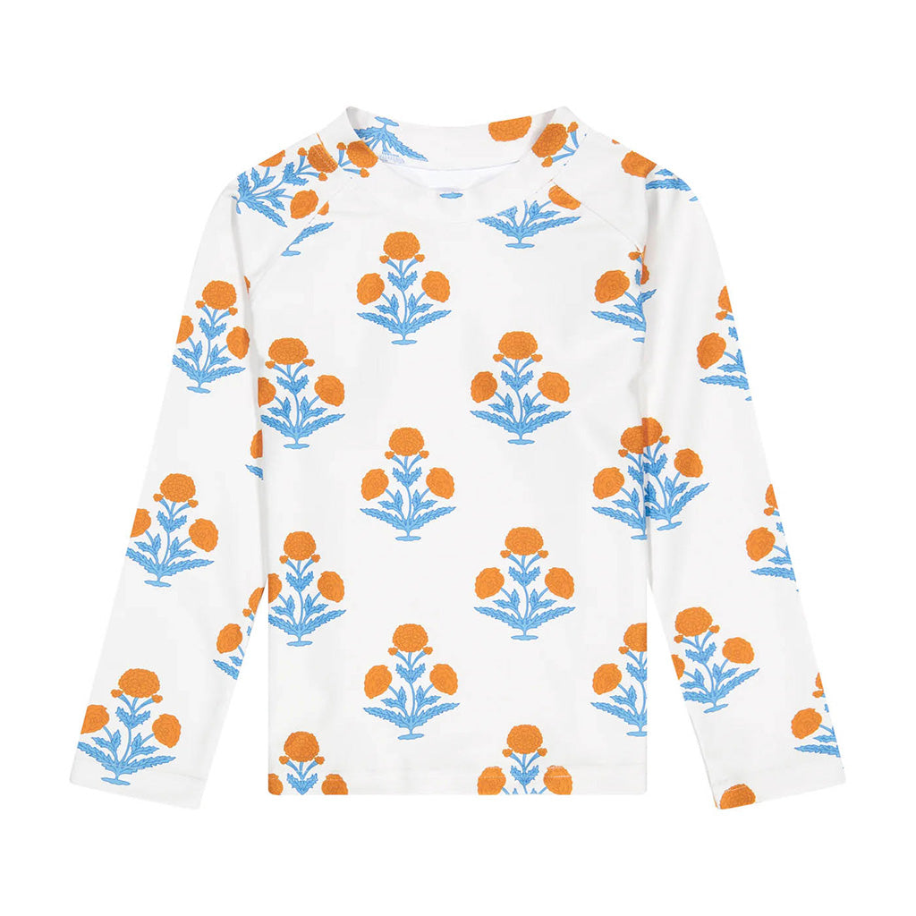 Our coordinating Orange Floral and Blue Stripe prints are the perfect compliment to one another for sibling coordinated summer days or mix-and-match options, alike.
