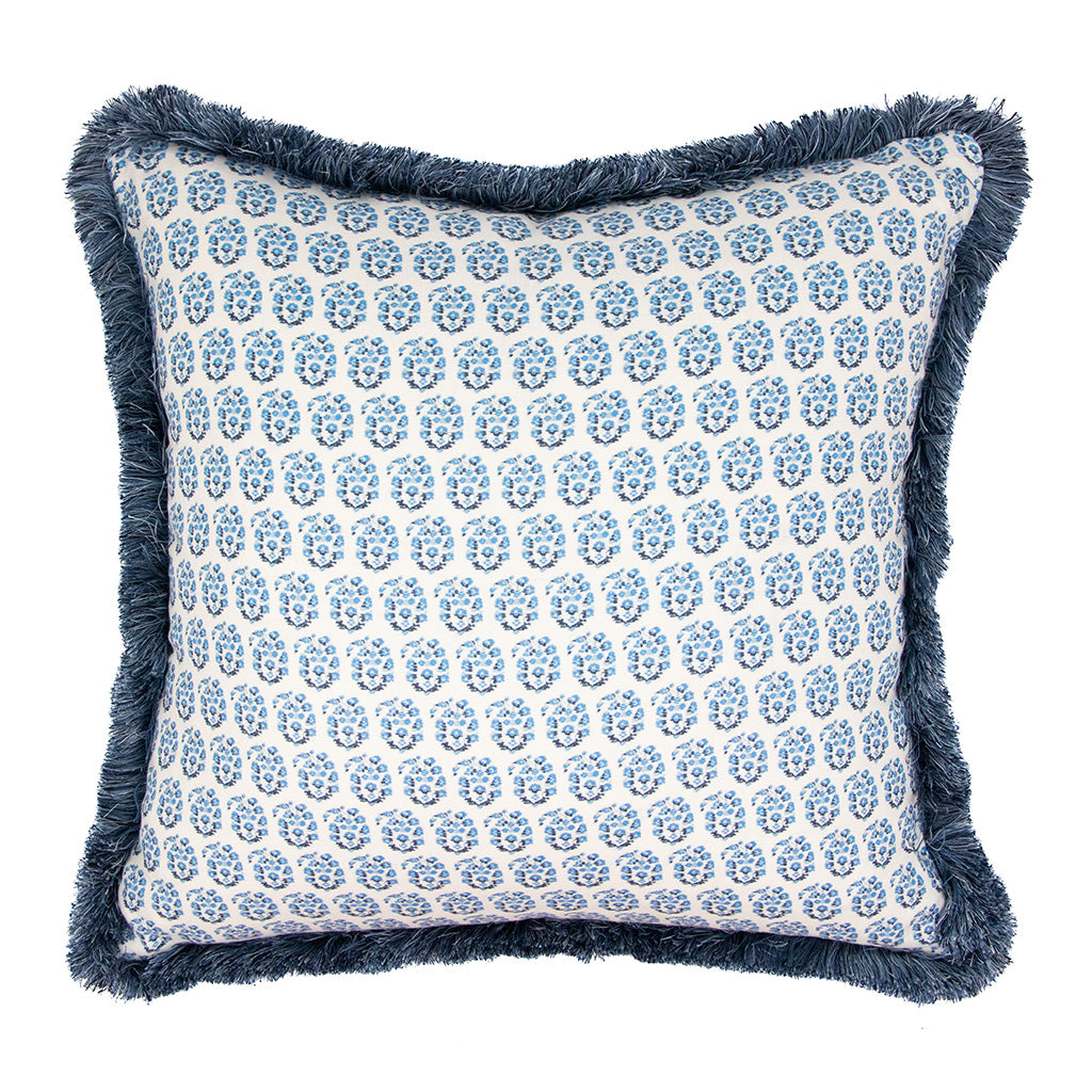 Our Jodhpur is a graphic take on a classic paisley motif, repeated on a small scale to function on upholstery and smaller pieces. Its range of colors complements our florals, stripes, toiles, and other illustrative patterns. Features brush fringe.