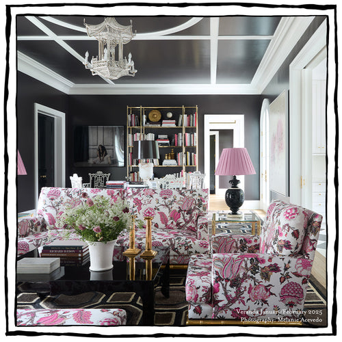 All upholstery and curtains in our Audrey St. Moritz Fabric