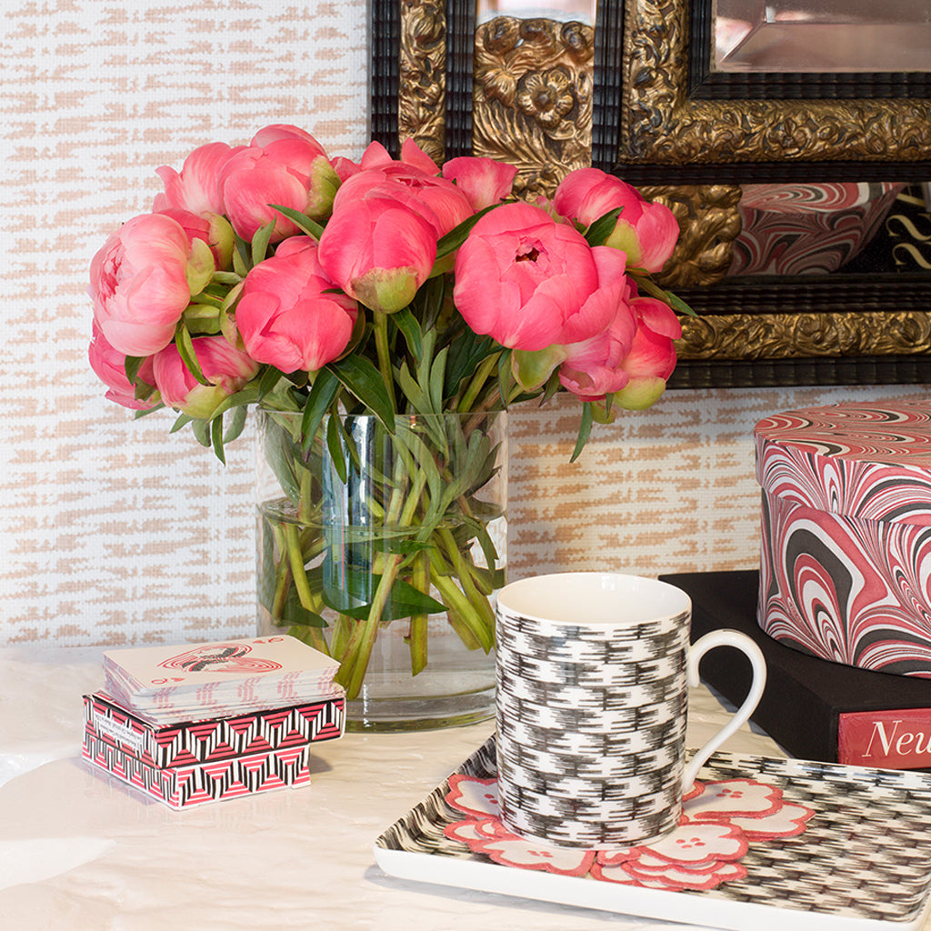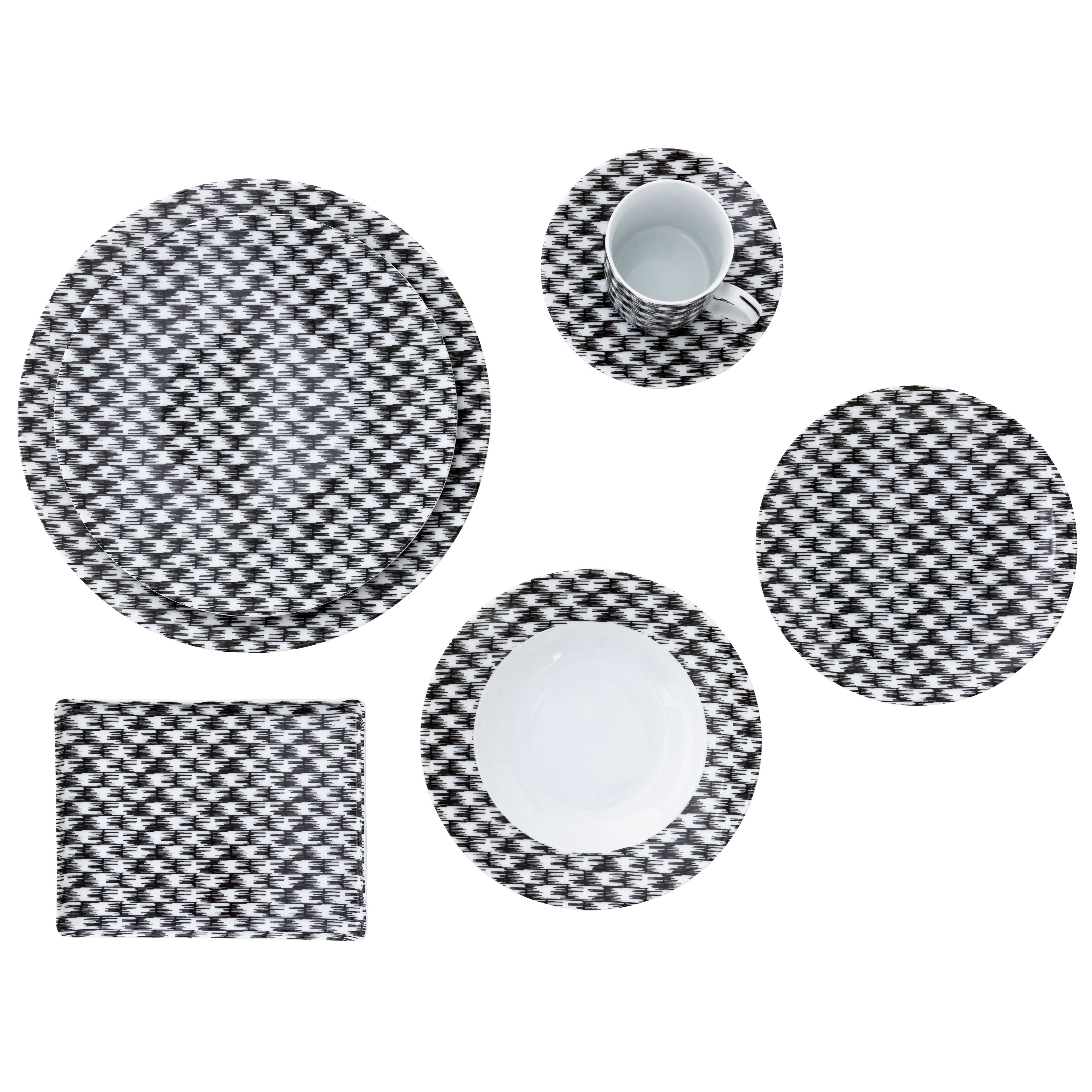 The design is set upon porcelain of the highest quality. Cestino is our graphic interpretation of a basket weave, using a motif carried over from our textile collection. Designed to playfully mix with other designs in our collection or to spruce up more traditional settings.