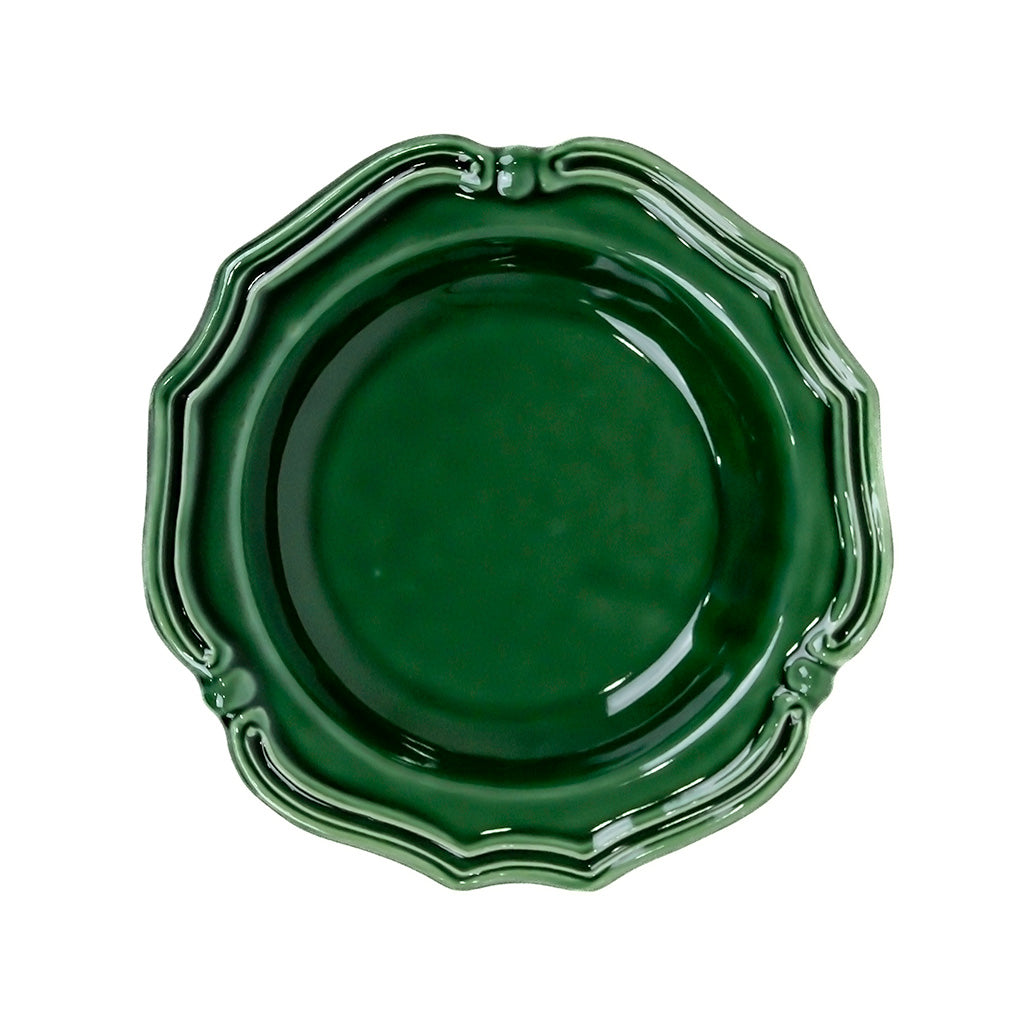 These plates are designed with the timeless curves of a classic French tableware service. Finished in a rich emerald glaze with graceful geometric lines and relieved edges, any table is transformed into a lush, boldly sophisticated meal. Soup, Dinner and Dessert (or salad!) plates complete a full setting of instant heirloom pieces.
