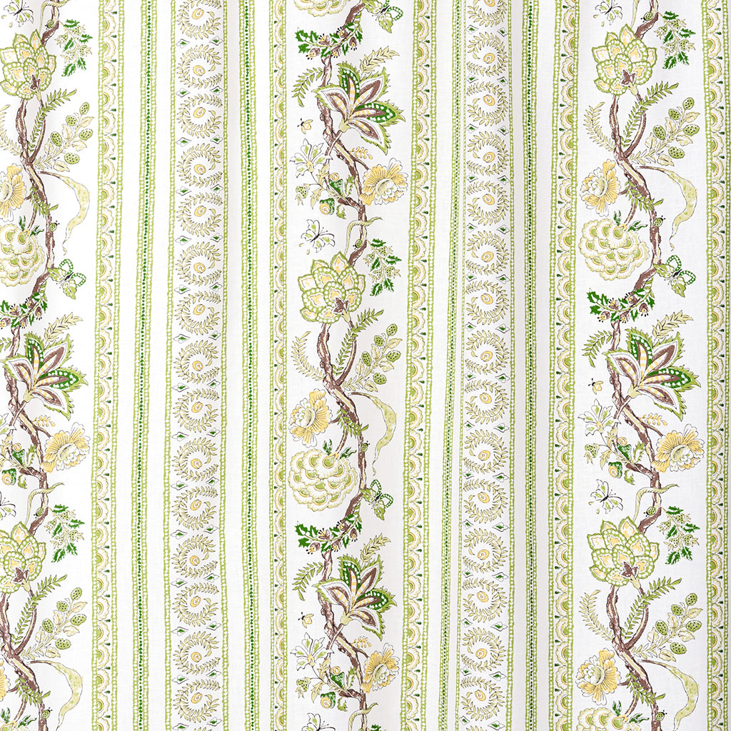 The sky is the limit for this climbing vine print! Stripes of varying width and pattern allow for a multitude of uses. Use it as a contrast on the face of a cushion or as decorative accents on pillows and the edges of window treatments. It also functions beautifully on ottomans and chairs.