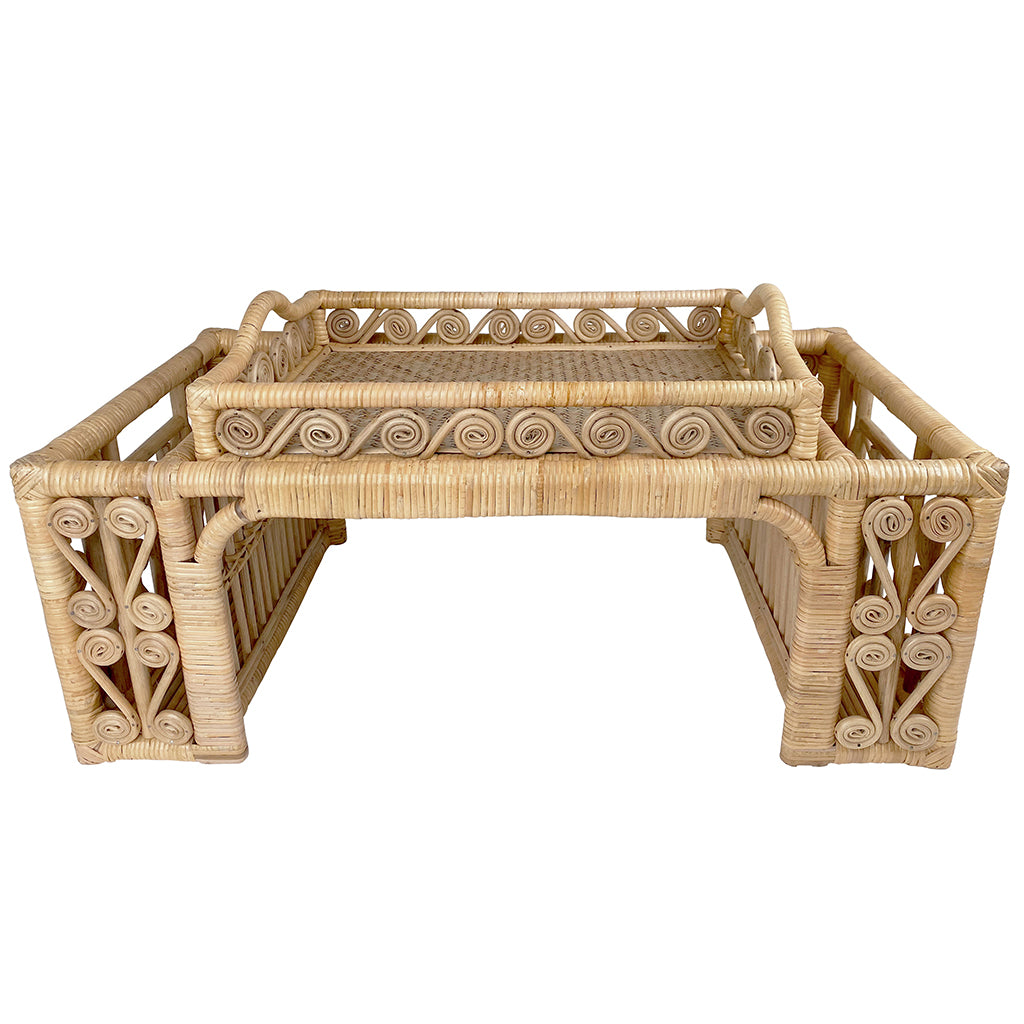 Breakfast in bed in the grandest of fashion! This woven rattan breakfast set features a removable tray for safe and easy serving and two storage sections for your AM reading materials. What a way to start the day!