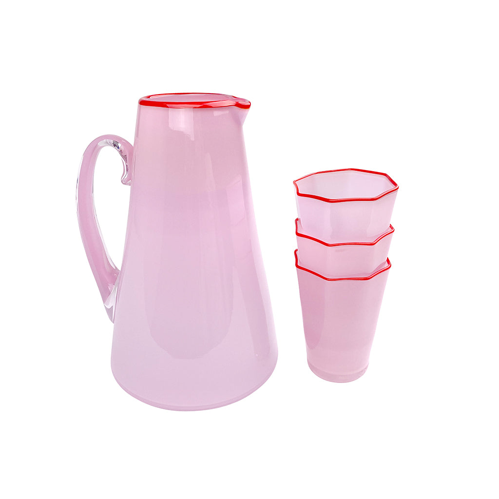 Individually hand-blown in a small French workshop, our Tavolo Pitchers have a playful and weighty presence, serving as a an instant centerpiece wherever they sit. Available in a variety of colors, both clear and opaque, to match our Otto Tumblers.