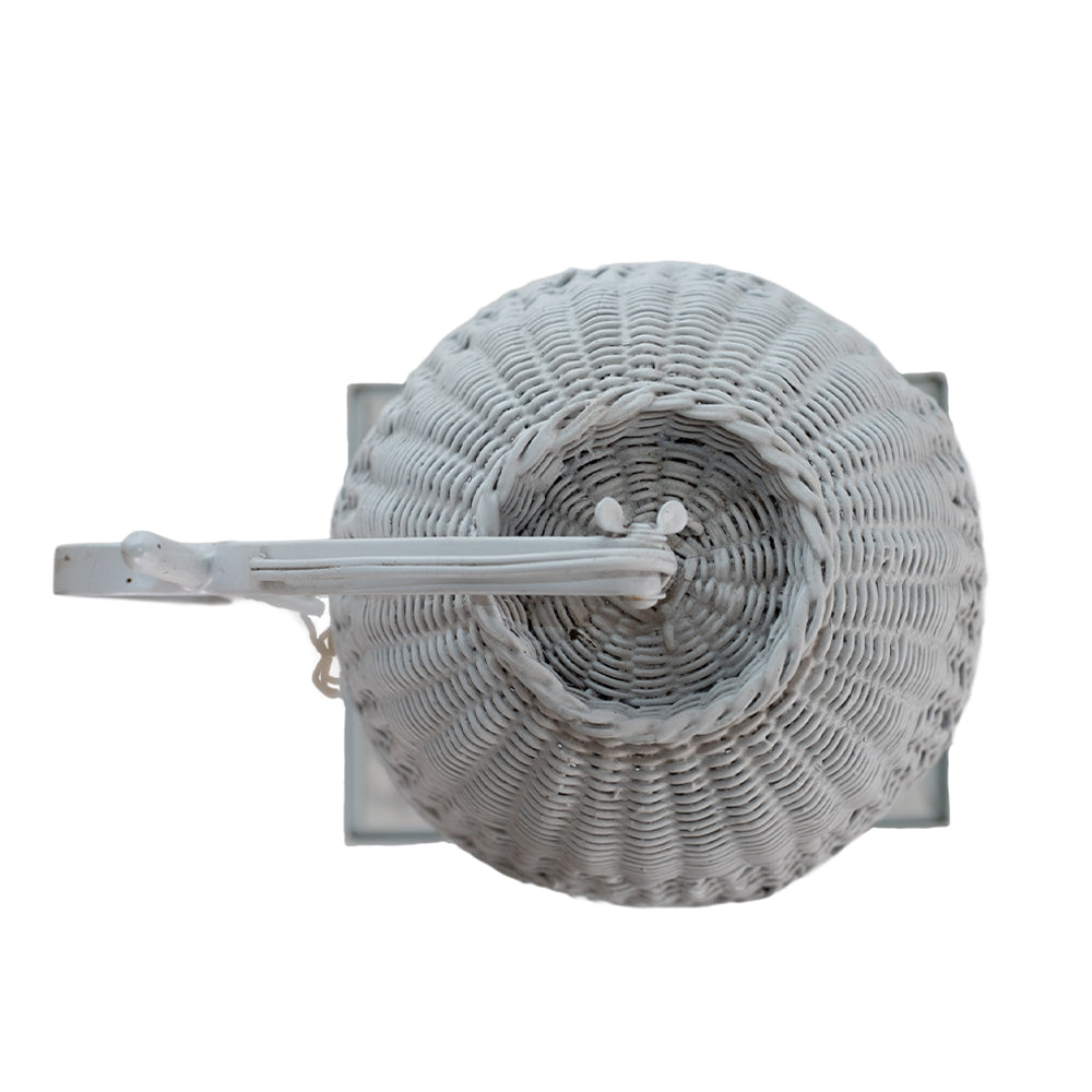 - White Wicker Lamp with Wrought Iron and Glass Side Table